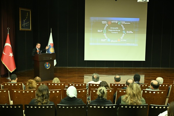 Konferans, Çukurova Üniversitesi Jeoloji Mühendisliği Bölümü Öğretim Üyesi Prof. Dr. Tolga Çan’ın “Afetlere Karşı Dirençlilikte Tehlike ve Risk Analizlerinin Önemi” başlıklı sunumuyla devam etti.