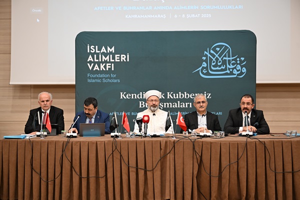 Prof. Dr. Mustafa Karataş’ın başkanlığında yürütülen Çalıştayda, doğal afetler ve toplumsal buhranlar karşısında alimlerin rehberlik rolü, toplumun manevi ve psikolojik destek ihtiyacı, dayanışma ruhunun güçlenmesi gibi konular ele alındı.