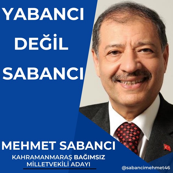 Afşin Haber aracılığı ile Kahramanmaraşlılara seslenen Bağımsız Milletvekili Adayı Mehmet Sabancı; Aziz Kahramanmaraşlım. Bir kardeşiniz, abiniz, amcanız olarak bu ömrümü sizinle birlikte yaşadım. Yüce Allah (cc) Milletvekilliğini de lütfeder görev nasip ederse Mecliste Genel Kurul olmadığı günler de Kahramanmaraş’ta açacağım Milletvekilliği bürosunda sizlerin Ankara’ya gitmeden gerek Ankara’da ki gerekse Kahramanmaraş’ta ki meselelerinizi buradan takip etmek, dolayısıyla yine sizinle beraber gülmek ve de ağlamak tüm zamanlarda birlikte olmak, istişareler ederek Kahraman şehrimi birlikte yönetmek üzere emrinizde ve hizmetinizde olacağım dedi.