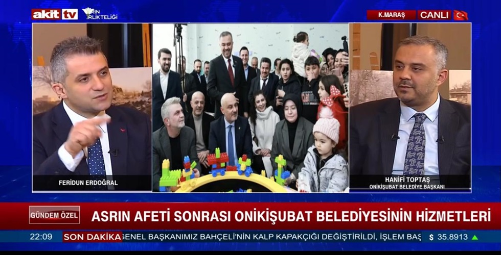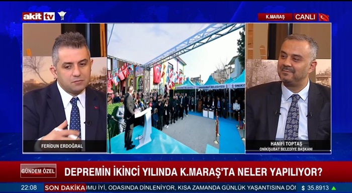 Onikişubat Belediye Başkanı Hanifi Toptaş, Asrın Felaketi’nin 2’nci yıl dönümü dolayısıyla gün boyu Kahramanmaraş’tan canlı yayın yapan Akit TV’nin Gündem Özel programına konuk oldu.