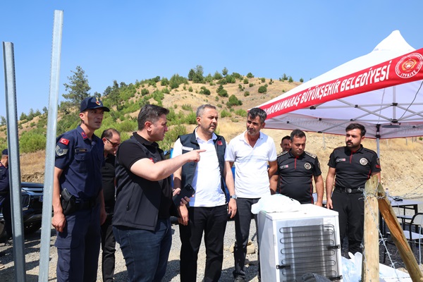 Ziyaret sırasında, bölgede devam eden soğutma çalışmaları hakkında ekiplerden son durumu öğrenen Toptaş, belediyenin destekleri konusunda istişarelerde bulundu.