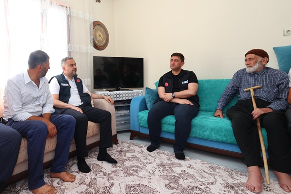 Kaymakam Salih Çiğdem ile birlikte yangında evleri hasar gören aileleri ziyaret eden Başkan Toptaş, devletin tüm imkanlarıyla vatandaşların yanında olduğunu belirtti.