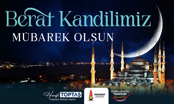 Berat Kandili dolayısıyla mesaj yayımlayan Onikişubat Belediye Başkanı Hanifi Toptaş, af ve arınma gecesi olan Berat Kandili’ne ulaşmanın huzurunu yaşadıklarını belirterek tüm hemşerilerinin Berat Kandili’ni tebrik etti.