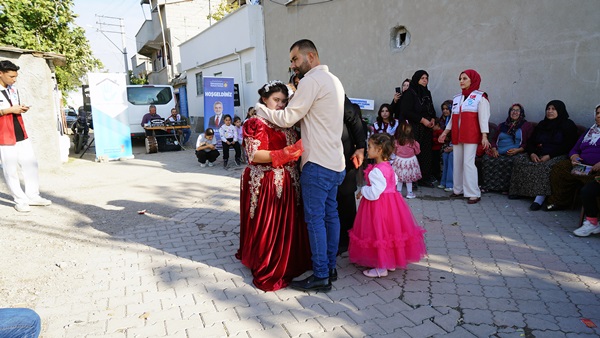 Kahramanmaraş Büyükşehir Belediyesi, Başkan Fırat Görgel öncülüğünde “Engelsiz Kahramanmaraş” hedefi doğrultusunda anlamlı bir projeye daha imza attı. Down sendromlu 33 yaşındaki Melek Demircik’in en büyük hayali olan gelinlik giyme isteği, Büyükşehir Belediyesinin özel organizasyonuyla gerçeğe dönüştü. Dulkadiroğlu Erkenez Mahallesi’nde düzenlenen temsili düğün töreninde mahalle sakinleri ve aile dostları büyük bir coşkuyla Melek’in mutluluğuna ortak oldu. Organizasyon, katılımcılara duygu dolu anlar yaşattı. Gönüllü Gençlik Hareketi üyelerinin de aktif şekilde yer aldığı programda, kına yakıldı, pasta kesildi, oyunlar oynandı. Renkli görüntülere sahne olan düğünde Melek’in sevinci yüzünden okunurken, mahallede adeta bayram havası esti. Anne Hacer Demircik ve baba Seyit Demircik, kızlarının en büyük hayalini gerçekleştiren bu özel organizasyon nedeniyle duygusal anlar yaşadı. Aile, bu anlamlı desteklerinden dolayı Büyükşehir Belediye Başkanı Fırat Görgel’e ve emeği geçen tüm belediye çalışanlarına teşekkür etti.