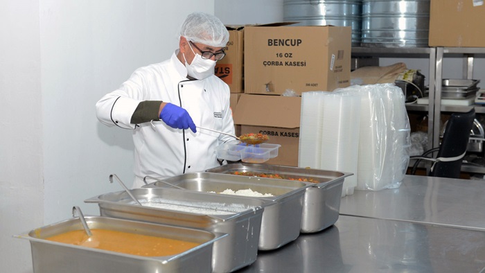 Büyükşehir Belediyesi, evde yalnız yaşayan 65 yaş üstü 340 vatandaşa haftanın her günü sıcak yemeklerini ulaştırmaya devam ediyor. Büyükşehir Belediyesi aşçıları tarafından titizlikle hazırlanan yemekler, paketlenerek ekipler aracılığıyla yaşlı vatandaşların kapılarına kadar ulaştırılıyor.
