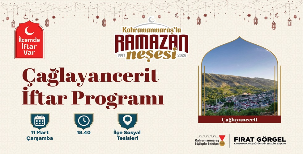 Büyükşehir Belediyesinin düzenlediği “İlçemde İftar Var” programı Çağlayancerit’te devam edecek. 11 Mart Çarşamba günü İlçe Sosyal Tesisleri’nde gerçekleştirilecek programda yüzlerce vatandaş iftar sofrasında bir araya gelerek Ramazan’ın bereketini paylaşacak.