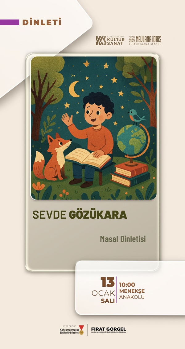 UNESCO tarafından Türkiye’nin ilk “Edebiyat Şehri” olarak ilan edilen Kahramanmaraş, bu unvanı kültür ve sanatla pekiştirmeye ve geliştirmeye devam ediyor. Kahramanmaraş Büyükşehir Belediyesi, Mevlâna İdris Kültür Sanat Sezonu çerçevesinde özellikle çocuklara yönelik etkinliklere ayrı bir değer vererek, miniklerin sanatla büyümesini hedefliyor. Bu kapsamda, 13 Ocak Salı günü çocuklar için özel bir masal dinletisi düzenlenecek. Menekşe Anaokulu’nda gerçekleştirilecek etkinlikte, çocuk edebiyatının sevilen isimlerinden Sevde Gözükara, miniklerle bir araya gelecek. Saat 10.00’da başlayacak programda Gözükara, birbirinden eğlenceli, öğretici ve hayal gücünü besleyen masalları çocuklarla paylaşacak. Etkinlik çocukların hem keyifli vakit geçirmesine hem de okuma sevgisini pekiştirmesine katkı sağlayacak.