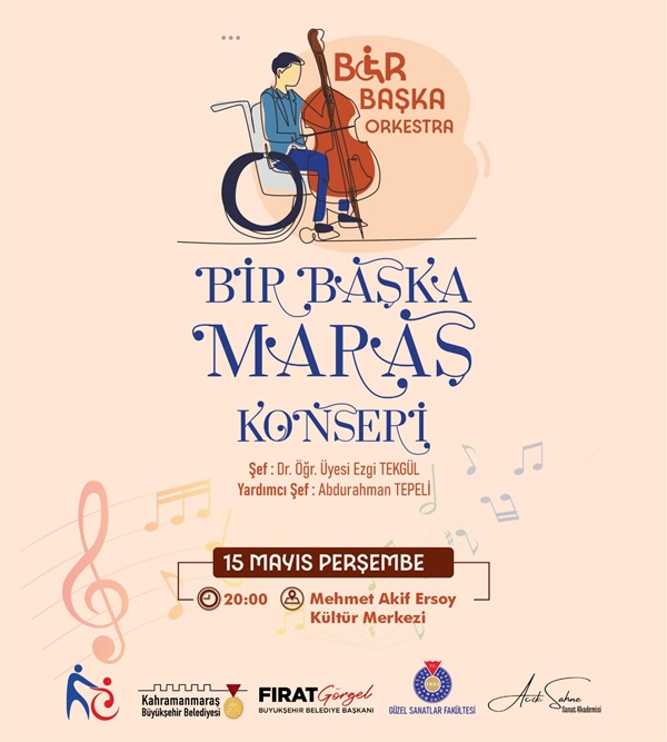 Kahramanmaraş Büyükşehir Belediyesi, sanat, dayanışma ve farkındalık dolu bir etkinliğe daha imza atıyor. Büyükşehir Belediyesi ile Açık Sahne Sanat Akademisi iş birliğiyle kurulan ve üyeleri özel gereksinimli bireylerden oluşan “Bir Başka Orkestra”, müzikseverlerle buluşmaya hazırlanıyor. Toplumsal farkındalığı artırmayı hedefleyen anlamlı proje kapsamında, “Bir Başka Maraş” adlı konser, 15 Mayıs Perşembe günü Mehmet Akif Ersoy Kültür Merkezi’nde düzenlenecek. Saat 20.00’da başlayacak olan konser, şehrin kültür sanat hayatına önemli bir katkı sunarken aynı zamanda özel bireylerin sanatsal potansiyelini gözler önüne serecek. Konserin şefliğini, KSÜ Güzel Sanatlar Fakültesi akademisyenlerinden Dr. Öğr. Üyesi Ezgi Tekgül üstlenecek. Ezgi Tekgül yönetimindeki orkestra, gecede birbirinden değerli eserleri seslendirerek dinleyicilere duygu yüklü anlar yaşatacak. Büyükşehir Belediyesinden yapılan açıklamada, konsere tüm müzikseverler davet edildi.