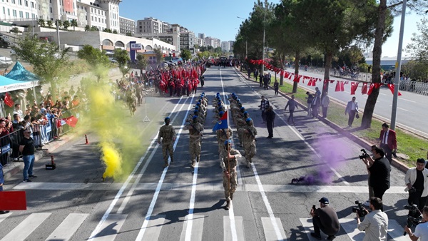Günün anlam ve önemini belirten konuşmaların ardından, Cumhuriyet’in ruhunu yaşatan şiir dinletisi, öğrencilerin seslendirdiği dizelerde; bağımsızlık mücadelesinin izleri, milletin kararlılığı ve Atatürk’ün mirası yankılandı. Programın finalinde ise polis ve askeri birlikler sahneye çıktı. Disiplinli adımlarla yürüyen polisler ve Mehmetçikler hem protokolü hem de alanı dolduran vatandaşları selamladı. Askerî geçit töreni sırasında Türk bayrakları dalgalandı. Komando timlerinin gösterileri, izleyenlerden büyük alkış aldı.