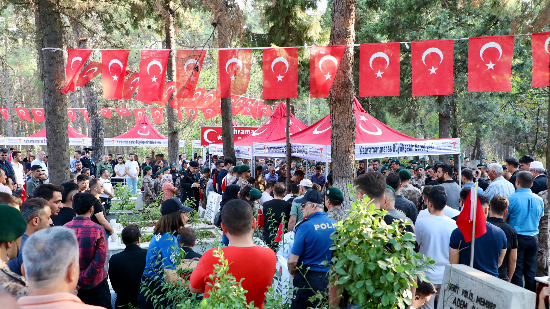 Abdülhamid Han Caminde kalınan cenaze namazı sonrası aziz şehidimiz, Kahramanmaraş Şeyh Adil Mezarlığına dualarla defnedildi.
