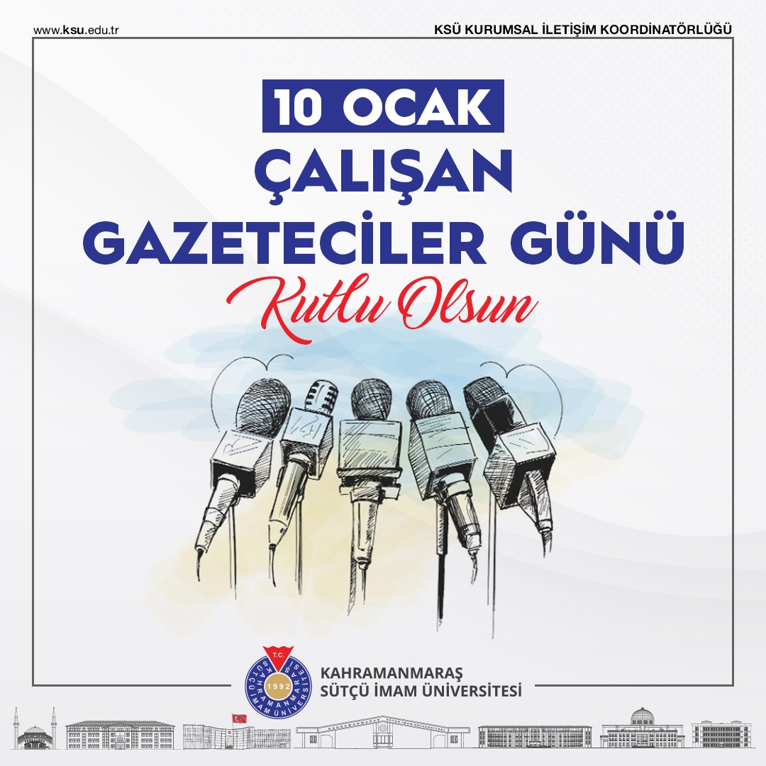 Kahramanmaraş Sütçü İmam Üniversitesi Rektörü Prof. Dr. Mahmut Ak, 10 Ocak Gazeteciler Günü dolayısı ile bir kutlama mesajı yayınladı. ,Prof.Dr. Ak, mesajında şunları söyledi;