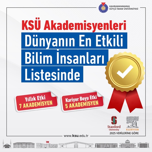 Kahramanmaraş Sütçü İmam Üniversitesi (KSÜ) olarak Stanford Üniversitesinden bilim insanları tarafından her yıl hazırlanan ve bilim dünyasında büyük saygınlığa sahip olan “Dünyanın En Etkili Bilim İnsanları” listesi yayımlandı.