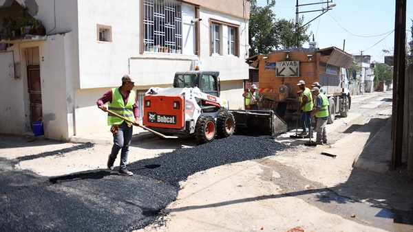 KASKİ, Dulkadiroğlu Namık Kemal Mahallesi’nde altyapı imalatları sırasında yol yüzeylerinde meydana gelen bozulmaları sıcak asfaltla kaplıyor.
