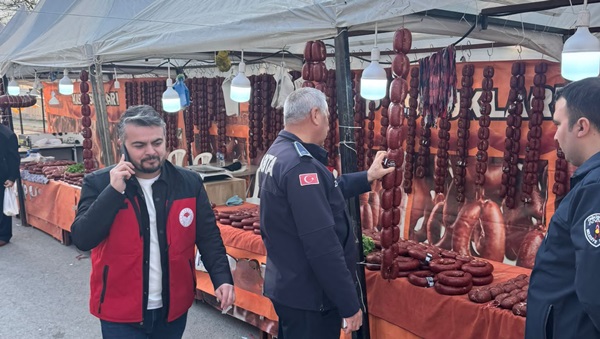 Ekipler, son denetim sırasında Yöresel Çarşı olarak kurulan bir pazarda sucuk satışı gerçekleştiren firmayı kapsamlı incelemeye aldı.