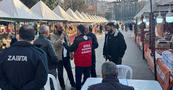 Ekipler, son denetim sırasında Yöresel Çarşı olarak kurulan bir pazarda sucuk satışı gerçekleştiren firmayı kapsamlı incelemeye aldı.
