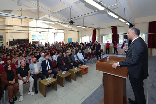 “Öncelikle hepinizi sevgiyle, saygıyla selamlıyorum. Bugün sizlerle bir arada olmaktan büyük bir memnuniyet duyuyorum. ‘Gönülleri Giydiriyoruz’ projemiz kapsamında, siz değerli öğrencilerimize çam sakızı çoban armağanı hediyelerimizi takdim ediyoruz. Bizler biliyoruz ki bu ülke, sizin kanatlarınızla yükselecek. Göreve geldiğimiz günden bu yana gençlerimiz için hem fiziki hem de manevi anlamda birçok projeyi hayata geçirdik, bundan sonra da aynı azimle çalışmaya devam edeceğiz.”