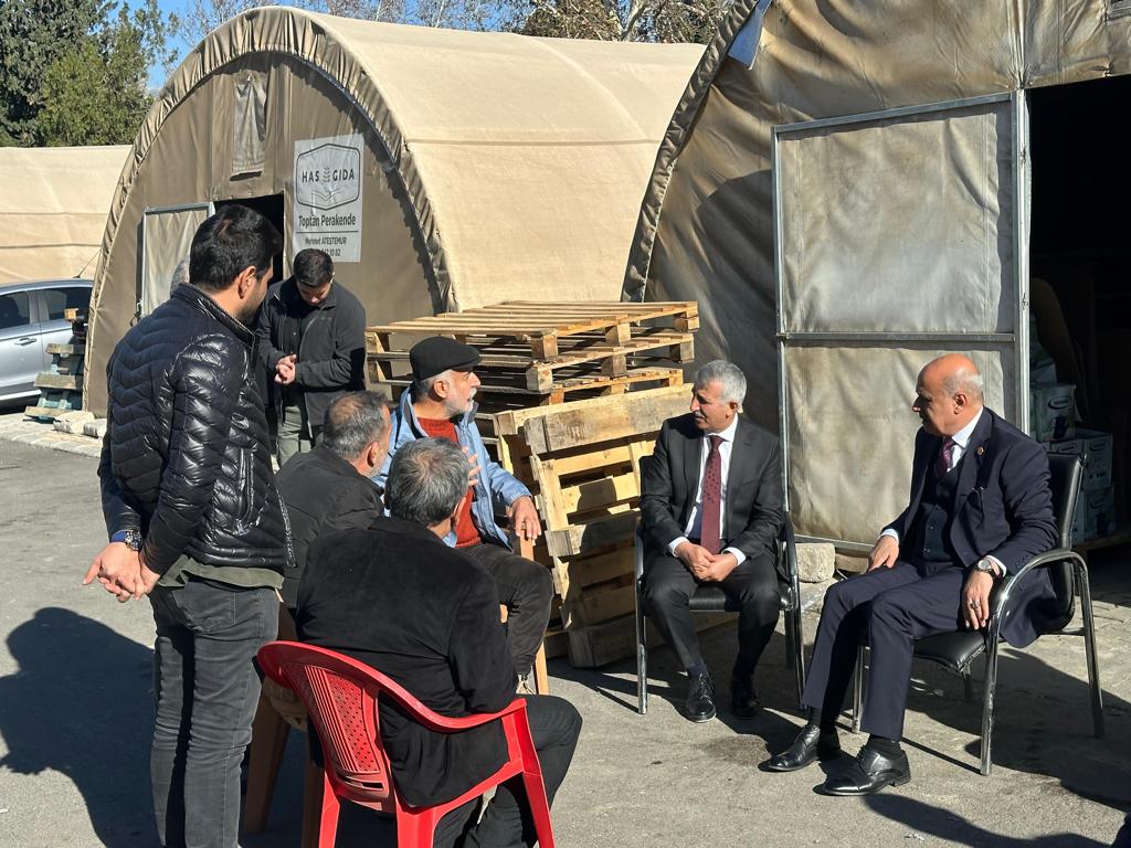 Bildiğiniz gibi şehir merkezimizde Yerinde Dönüşüm Projelerine başlandı. Binalarımız ve iş yerlerimiz hazırlanıyor. Bizler, toplumun tüm kesimleriyle bire bir ilgileniyoruz. Tabi ki ekonomik kalkınmanın, şehirde hayatın devam etmesinin en büyük paydaşı siz kıymetli esnaflarımızsınız. Sizlerin dertleriyle, ihtiyaç ve talepleriyle bire bir ilgileniyoruz. Buradaki yaşadığınız sorunlarınızı tabi ki anlıyoruz. İlgili kurumlarımız bu sorunların yaşanmaması adına gerekli çalışmaları yürütüyor. Emniyet tedbirlerimiz de sürekli alınıyor. Sorunların kalıcı çözüme kavuşması için Bakanlığımız ve Belediyelerimiz ile irtibat halindeyiz. Sizleri kalıcı iş yerlerinize biran evvel kavuşturma gayretindeyiz. Sorunlarınızın çözümü için ben bire bir takipteyim. İnşallah bu şehri hep birlikte yeniden ayağa kaldıracağız. Sizlere hayırlı ve bereketli kazançlar diliyorum.” diye konuştu.