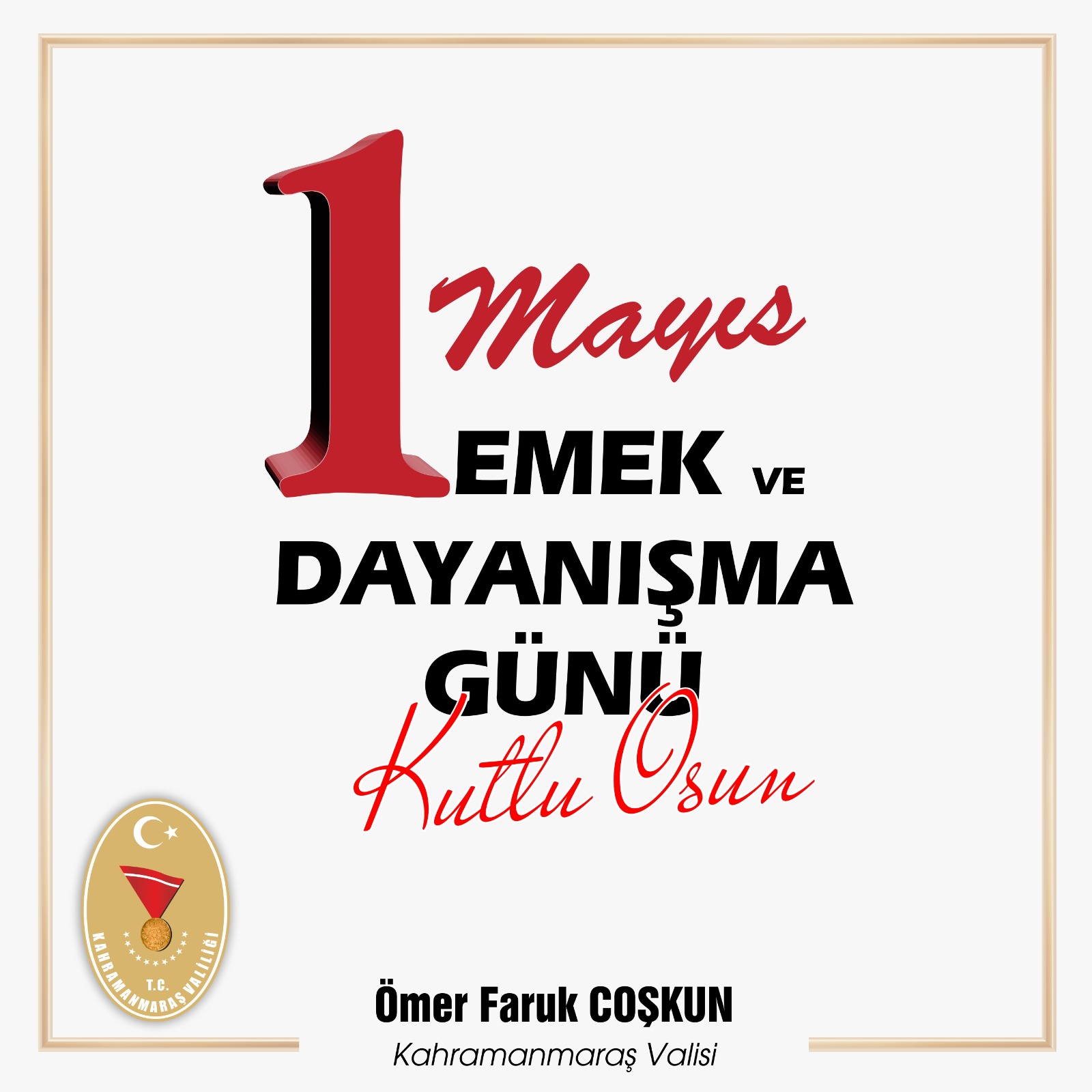 Kahramanmaraş Valisi Ömer Faruk Coşkun, 1 Mayıs Emek ve Dayanışma Günü dolayısı ile bir mesaj yayınladı.